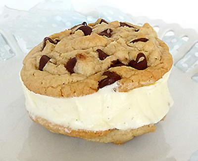 The method here is pretty simple. Bake the cookies and then scoop some ice cream onto the bottom of one cookie, top it with another, smoosh a little, and then roll in whatever kid of sprinkles/chocolate chips/nuts you want.