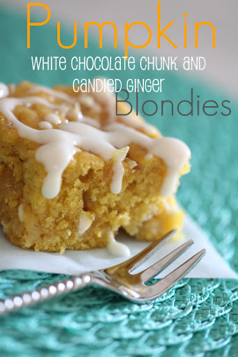 Pumpkin White Chocolate Chunk and Candied Ginger Blondies