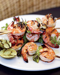 Grill the shrimp over moderately high heat, turning once, until lightly charred and cooked through, about 5 minutes.