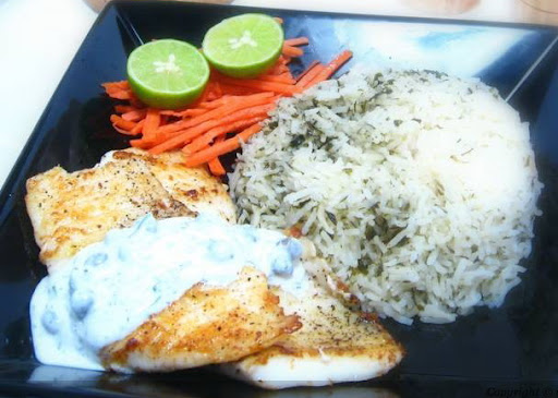 4. Serve the fillets with the rice on side and the sauce on top.