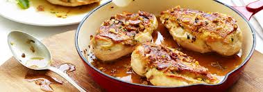 Add chicken back to the pan and simmer gently for 2-3 minutes. Internal temp at 165 degrees. Removed chicken to warmed serving platter and stir 2 Tablespoons of butter into the sauce to silken. Stir in parsley and capers and pour over chicken. Garnish with almonds.