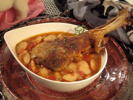 Ladle the butter beans and sauce onto the serving plates and top with a drumstick.