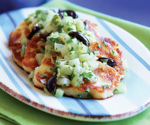 Pan-Fried Halloumi with Fennel, Olive & Mint Compote