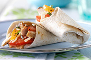 Fold over opposite sides of each tortilla, then roll up starting at bottom of tortilla. Serve immediately. Or wrap tightly in plastic wrap and refrigerate until ready to serve.