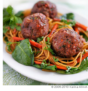 Turkey Meatballs with Asian Noodles and Herbs