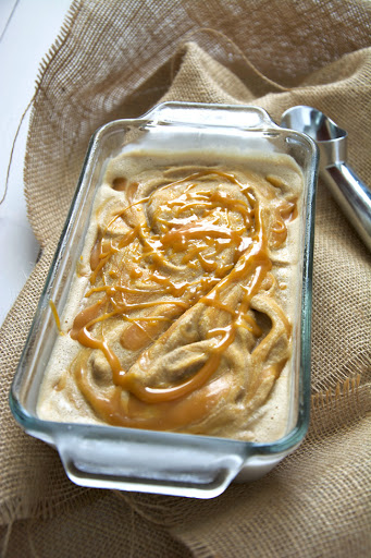 Skinny Caramel Macchiato Ice Cream with Homemade Caramel Drizzle