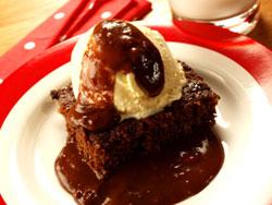Cut into squares and place on individual serving plates. Top each with scoop of ice cream and fudge sauce from bottom of pan. Serve immediately.