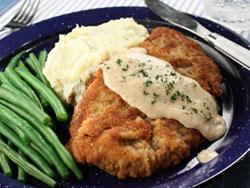 Dip steaks in flour mixture, coating completely, then in buttermilk and again in flour. Reserve remaining flour mixture.