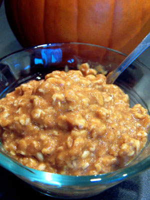 Mix spices, applesauce, pumpkin puree and oatmeal together