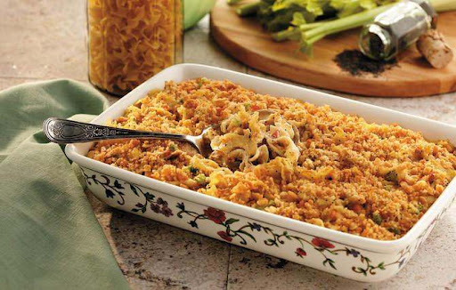 .6Combine crackers and butter in a medium bowl and toss to coat. Sprinkle over soup mixture. Bake casserole for 30 minutes. Serve immediately.