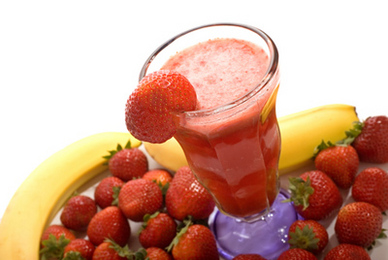 Pulse oats in a blender several times to grind. Add juice, bananas, berries, honey and ice. Blend until smooth.