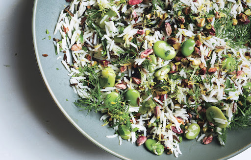DO AHEAD: Fava beans can be cooked and peeled 2 days ahead; cover and chill. Wild and basmati rice can be cooked 2 days ahead; cover and chill.