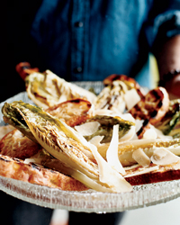 In this fun incarnation of Caesar salad, grilling romaine with a light brushing of oil boosts its flavor while adding few calories. For the dressing, Kerry Simon ingeniously swaps in low-fat mayonnaise for egg yolks
