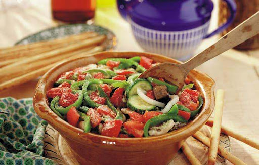 - 1 medium green bell pepper, sliced2 large tomatoes, chopped