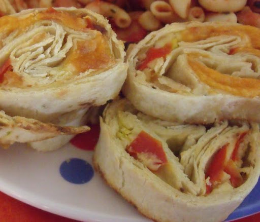 These were scrumptious. I used the large tortillas, because that is what I had on hand. They didn't turn our very pretty, but were gobbled up just the same. Used double the amount of banana peppers! Went very well with a bowl of soup for lunch. The only note I feel wasn't addressed was warming the tortillas before trying to roll them! Also, I think next time I will spread the cream cheese and then sprinkle the peppers and the cheese. Thnx for sharing this recipe.