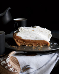 This supereasy caramel lovers' dream pie is from Simplethings Sandwich & Pie Shop in Los Angeles. The filling is sweetened condensed milk sprinkled lightly with sea salt and baked until thick and gooey, then chilled in a simple graham cracker crus