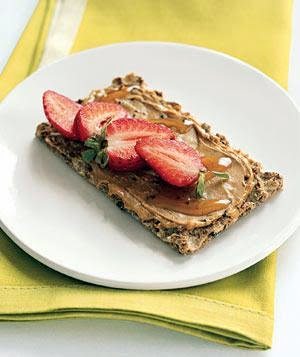 Think of this as a gourmet cook's PB & J. Spread 1 tablespoon of cashew butter on a slice of Ryvita Fruit Crunch. (Or substitute peanut butter and Triscuits.) Drizzle with ½ tablespoon honey and top with sliced strawberries.
