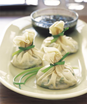 Jade Dumplings with Soy-Sesame Dipping Sauce