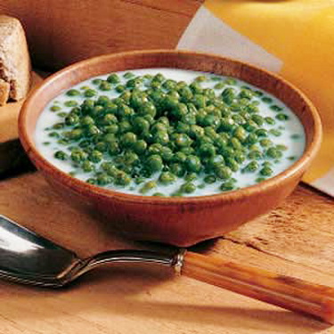 In a large saucepan, combine the flour, sugar and milk. Stir in peas and pepper; bring to a boil. Reduce heat; simmer for 10-12 minutes or until peas are heated through and sauce has thickened. Yield: 4 servings.