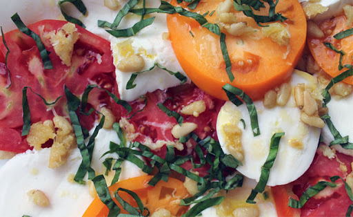 Tomato -Heirloom Caprese Salad with Buffalo Mozzarella and Toasted Pine Nuts