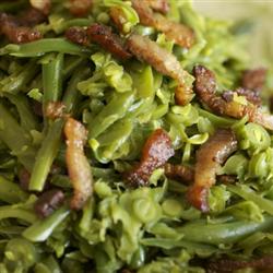 In a large deep skillet, cook bacon over medium-high heat until evenly browned. Remove bacon to paper towels, and reserve drippings in the skillet.