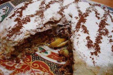 Dust pie with confectioners' sugar and cinnamon and serve immediately.
