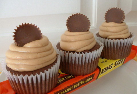 Cream butter and Peanut Butter until fluffy. Gradually add powdered sugar, alternating with a little milk at a time. Beat well, until desired consistency. Frost cupcakes and garnish with a Mini Reese’s Peanut Butter Cup