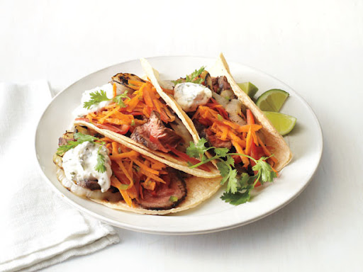 Carne Asada Tacos With Carrot-Pepper Slaw