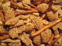 Combine cerial, pretzels and fish crackers in a very large bowl.
