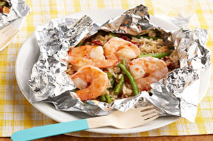 GRILL 10 to 12 min. or until shrimp turn pink and rice mixture is heated through. Cut slits in foil to release steam before opening packets.