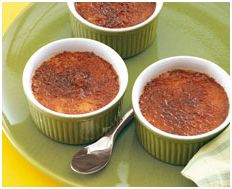 An hour before serving, sieve 1 tbsp (15 mL) sugar evenly over each custard. Place under broiler as close to heat as possible and watch sugar caramelize. It takes about 2 to 3 minutes. Sugar will turn a golden brown colour.