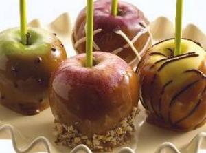 Allow to harden before repeating process with white confectionery coating, drizzling over apples to allow some caramel and chocolate to show.