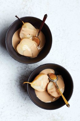 The choice of fruit used in this dish is important. To play up the tannins in the tea, match the custard with poached apricots or pears, which develop a tannic taste when cooked. Poached peaches would also be a good match.