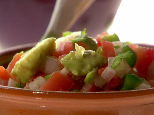Place the avocado on top of the tomato mixture and squeeze with lime juice to coat the avocado.