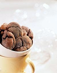 2. Place granulated sugar in a small bowl. Drop dough by heaping teaspoons into sugar and roll into balls. Roll again in sugar. Place balls 2 inches apart on an ungreased cookie sheet. Bake for 8 to 10 minutes or until edges are firm. Transfer cookies to wire racks and cool. Makes about 32.