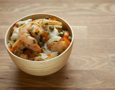 3. Drain the shrimp and vegetables and serve them in small bowls or mason jars.