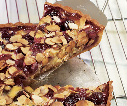 This tart has everything going for it: a silky custard, sweet cherries, and a crunchy almond topping. This tart dough is more like a cookie dough because the butter gets mixed with the sugar instead of being left in pieces. Blind baking the tart shell keeps the bottom crust from getting soggy. This recipe makes enough for two crusts; divide the dough and freeze half for future use (defrost it in the refrigerator overnight before rolling it out).