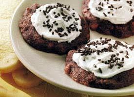 3. Bake 10 to 12 minutes or until set (centers will be soft). Cool 1 minute before removing from cookie sheet to wire rack. Cool completely, about 30 minutes. Frost with frosting; sprinkle with chocolate shot while frosting is still wet.