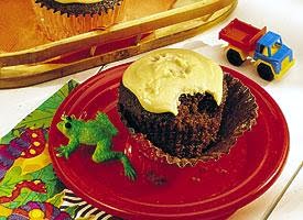1 Cupcake: Calories 640 (Calories from Fat 305 ); Total Fat 34 g (Saturated Fat 12 g); Cholesterol 75 mg; Sodium 60 mg; Total Carbohydrate 79 g (Dietary Fiber 3 g); Protein 7 g Percent Daily Value*: Vitamin A 2 %; Calcium 2 %; Iron 12 % Exchanges: