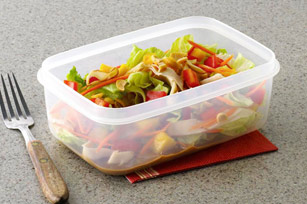 Spoon dressing into 3-cup resealable container; top with remaining ingredients. Cover with lid.