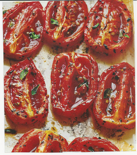Slow roasting takes ho-hum winter tomatoes and turns out fruit with summery concentrated sweetness and intense tomato essence. Serve as a side dish alongside roast beef or lamb, seared steak, or fish. Or puree the tomatoes with an additional splash of olive oil and toss with pasta.