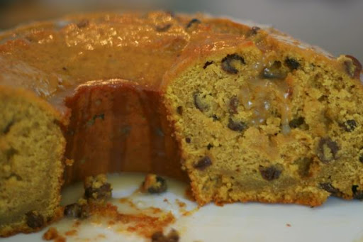 "Taken from my "Pumpkin Favorites" folder. Chopped walnuts or pecans can be substituted for the raisins if desired, and also sprinkled on top of the cake after glazing. If you don't want to use the glaze, a sprinkle of powdered sugar works just as well. This is a rich moist dense cake that is full of flavor, and only gets better with time!" By Kittencalskitchen on September 07, 2005