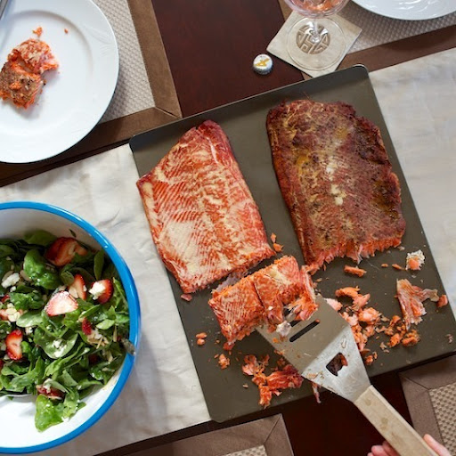 9. Enjoy the Salmon: Finally, remove the tented foil and serve your flaky and juicy creation. The un-seasoned salmon is deliciously mild and delicate, with a clean fresh salmon taste you can only get through smoking. The spice rub has a kick of pepper that's toned down with the sweetness of the brown sugar, and finishes nicely with that herbal note of coriander. Enjoy the fish with a glass of rose wine or a cold wit beer.