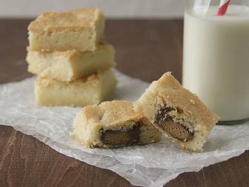 Mix second pouch of cookie mix with remaining 1/2 cup butter and egg. Drop dough by tablespoonfuls over candy bars. Gently press with hands, covering candy completely and making top layer even.