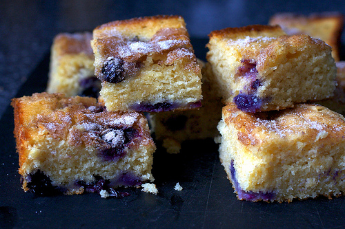 • 1/2 cup blueberries, fresh or frozen (if frozen, do not defrost first as it tends to muddle in the batter)
