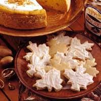 On a lightly floured surface, roll each portion of dough to 1/8-inch thickness. Using 2 1/2- to 3-inch leaf cookie cutters dipped into flour, cut into leaf shapes. Place 1 inch apart on an ungreased cookie sheet. Bake in a 375° oven 7 to 8 minutes or until edges are firm. Remove from cookie sheet and cool on a wire rack. Frost with Maple Frosting. Let frosting set. Place in an airtight container; store at room temperature up to 3 days. Makes about 54.