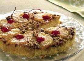 Banana Upside-Down Cake: Omit pineapple, cherries and pecans. Sprinkle 2 tablespoons chopped walnuts over brown sugar mixture in pan. Cut 2 bananas into slices; arrange on brown sugar mixture.