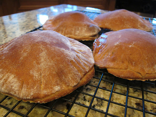 Working with the first half of dough, divide into 8 pieces for sandwich-sized pockets (or 16 pieces of snack-sized pockets). Using a floured rolling pin, roll each of the pieces into a circle roughly 5-6 inches (or 4-5 inches for snack-sized), and as thin as you can make them. Roll from the center of the dough outwards, as you do for pie dough. If the dough starts to shrink back on you, let it rest for five minutes and try again.