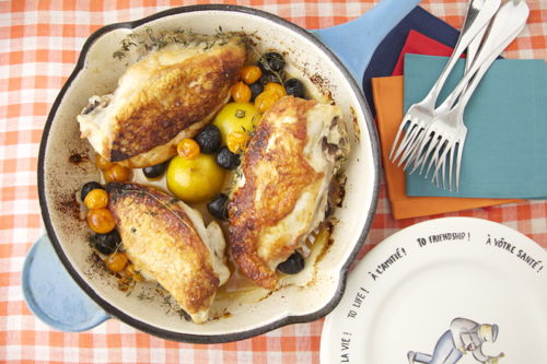 Roast Chicken with Caramelized Lemons, Cherry Tomatoes & Olives