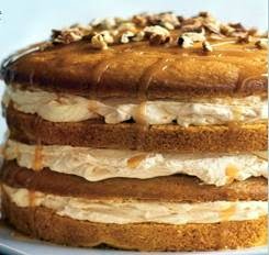 Kraft Kitchens TipsSize-WiseCelebrate and enjoy a serving of this indulgent cake on a special occasion.How to Slice and Stack Cake LayersPlace 1 of the cooled cake layers on serving plate. Make 2-inch horizontal cut around side of cake, using long serrated knife. Cut all the way through cake layer to make 2 layers. Remove top layer by sliding it onto 9-inch round cardboard circle. Frost cake layer on plate with ⅓ of the COOL WHIP mixture. Slide top half of split cake layer from cardboard circle onto frosted layer on plate. Place the remaining unsplit cake layer on a cutting board. Cut into 2 layers as done for the first layer. Repeat process of transferring cake layers to stacked cake layers on plate using the cardboard circle.SubstituteOmit caramel sauce. Microwave 10 KRAFT Caramels and 1 Tbsp. milk in microwaveable bowl on HIGH 2 min. or until caramels begin to melt. Stir until caramels are completely melted. Drizzle over cake just before serving; top with nuts